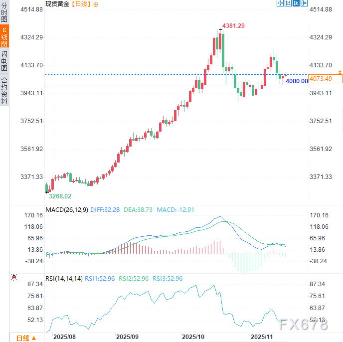 汇通财经APP讯——周三(11月19日)现货黄金小幅走高,上涨约0.25%至每盎司4077美元附近,延续前一交易日涨