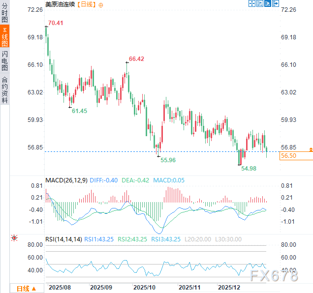 而全球经济增长与原油需求面临直接威胁(北约冲突是最大的需求破坏场景)、事件可能加速能源转型,为油市带来根本性的看跌动能。周三亚市早盘,油价延续跌势,美油一度跌破56美元/桶,早间特朗普宣布委内瑞拉临时当局将向美利坚合众国移交3000万至5000万桶高质量、受制裁的原油,石油将按市场价出售,而这笔钱将由特朗普掌控,已要求能源部长克里斯·赖特执行这项计划,将由储货船运输,并直接运往美国卸货码头。